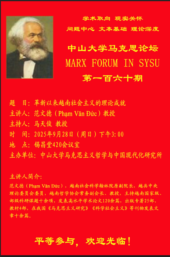 讲座预告:马克思论坛第160期(范文德 Pham Van Duc)