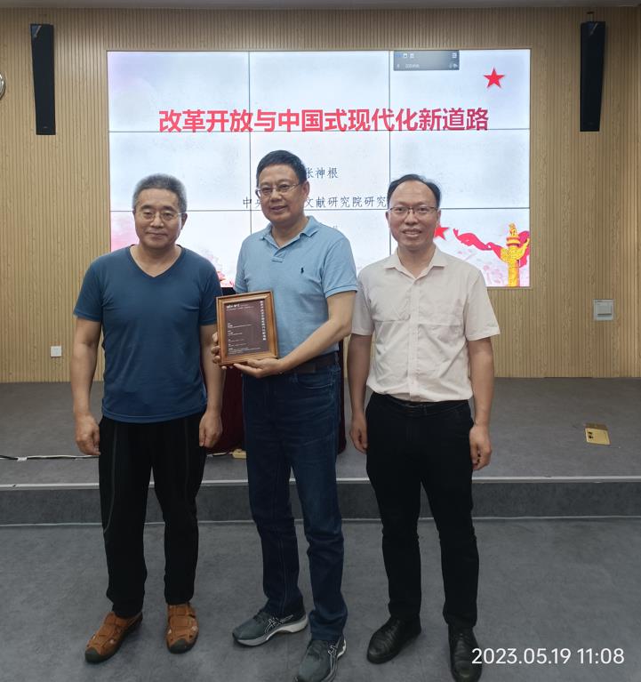 在现场交流环节结束后,马天俊教授进行总结。他指出改革开放是当代中国发展进步的必由之路,中国式现代化是当代中国的时代主题。张神根研究员从纵向与横向的时空维度展开相关论述。所谓纵向,即以中国共产党的历次代表大会为线索来谈改革开放与中国式现代化;所谓横向,即从西式、苏式等不同类型的现代化模式对比来谈中国式现代化新道路。此次讲座对于我们全面深入地研究有关思想与实践大有裨益。