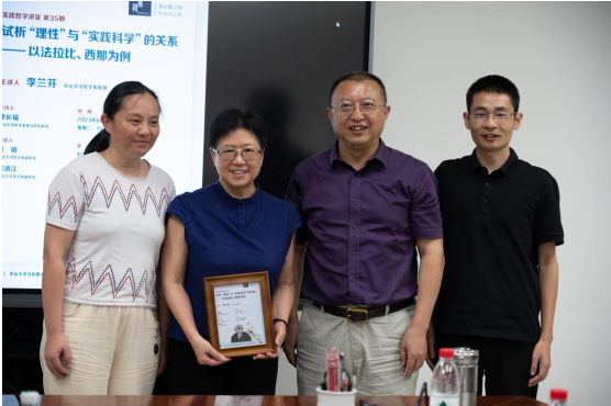 2023年6月6日下午,实践哲学讲堂第35期在中山大学南校园锡昌堂515会议室举办。本次讲堂由中山大学哲学系李兰芬教授主讲,主题为“试析‘理性’与‘实践科学’的关系——以法拉比、西那为例”。中山大学实践哲学研究中心主任徐长福教授担任本次讲堂的主持人,中山大学哲学系江璐副教授、中山大学哲学系张清江副教授担任评论人。本期讲堂由中山大学实践哲学研究中心与中山大学马克思主义哲学与中国现代化研究所主办,共有 20 余位师生参加。