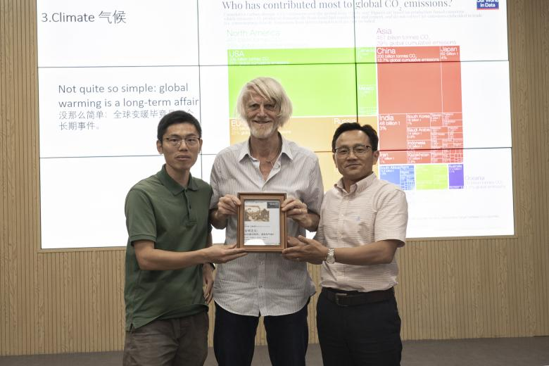 在讲座的最后,叶甲斌和谭安奎联手向范帕里斯赠送了活动的纪念海报。